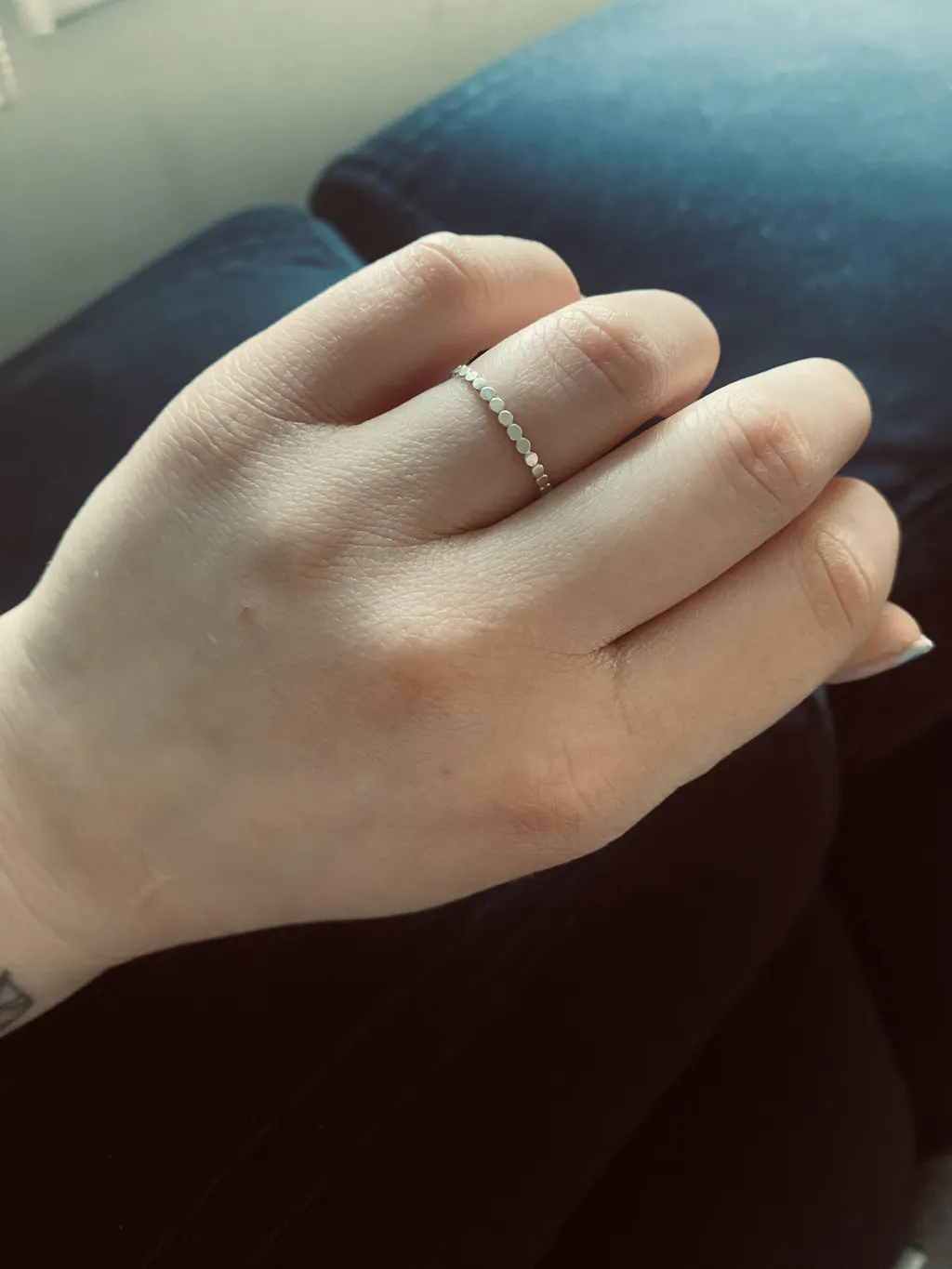 Minimalizm w nowoczesnym wydaniu. Kulkowy pierścionek młotkowany, który zachwyca oryginalną formą i delikatną fakturą. Podkreśla naturalne piękno, dodając dłoni subtelnej elegancji.