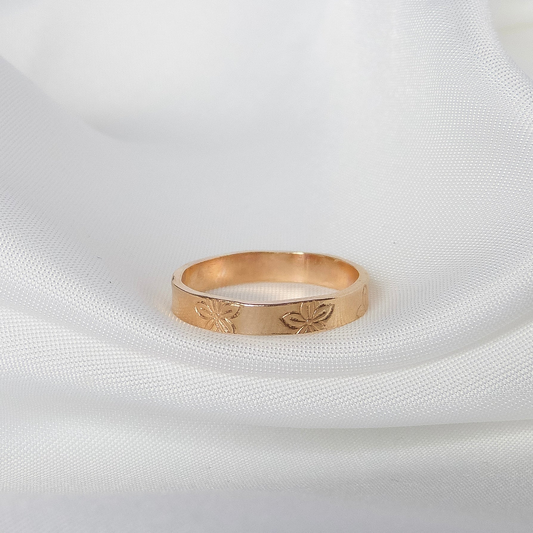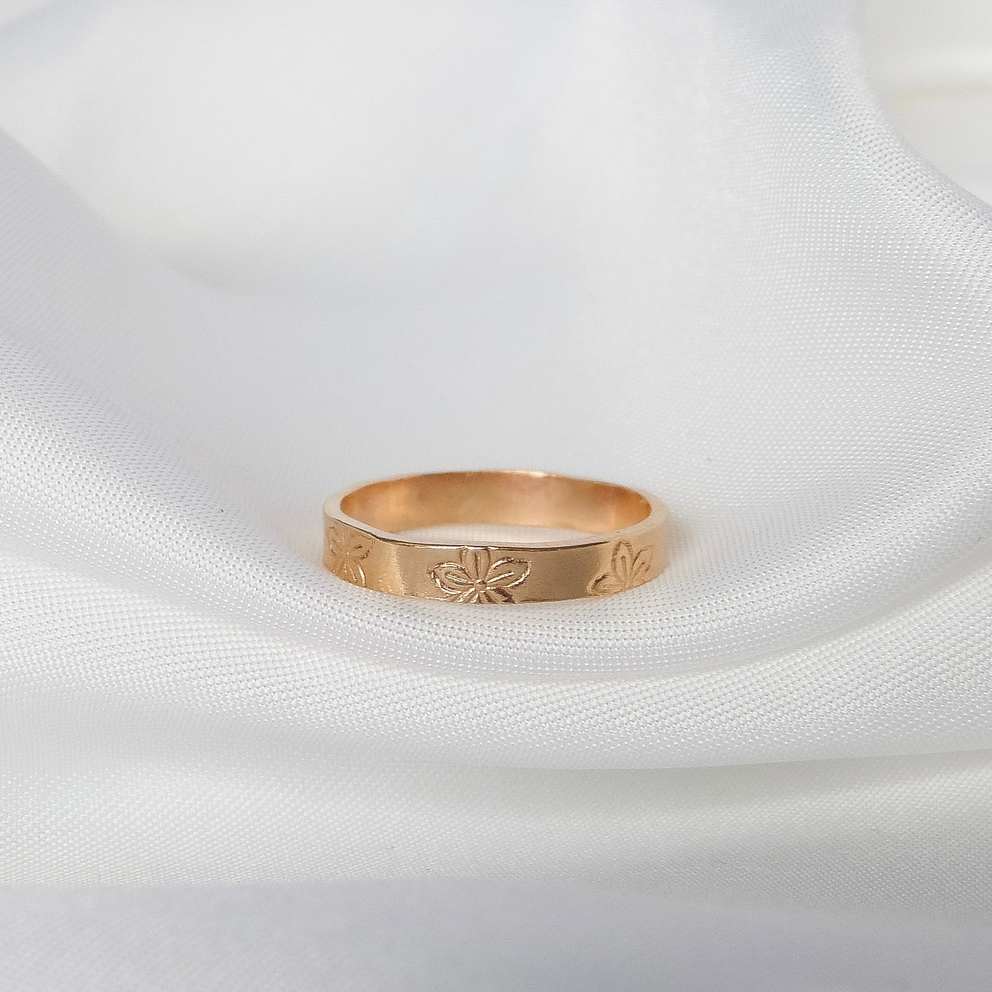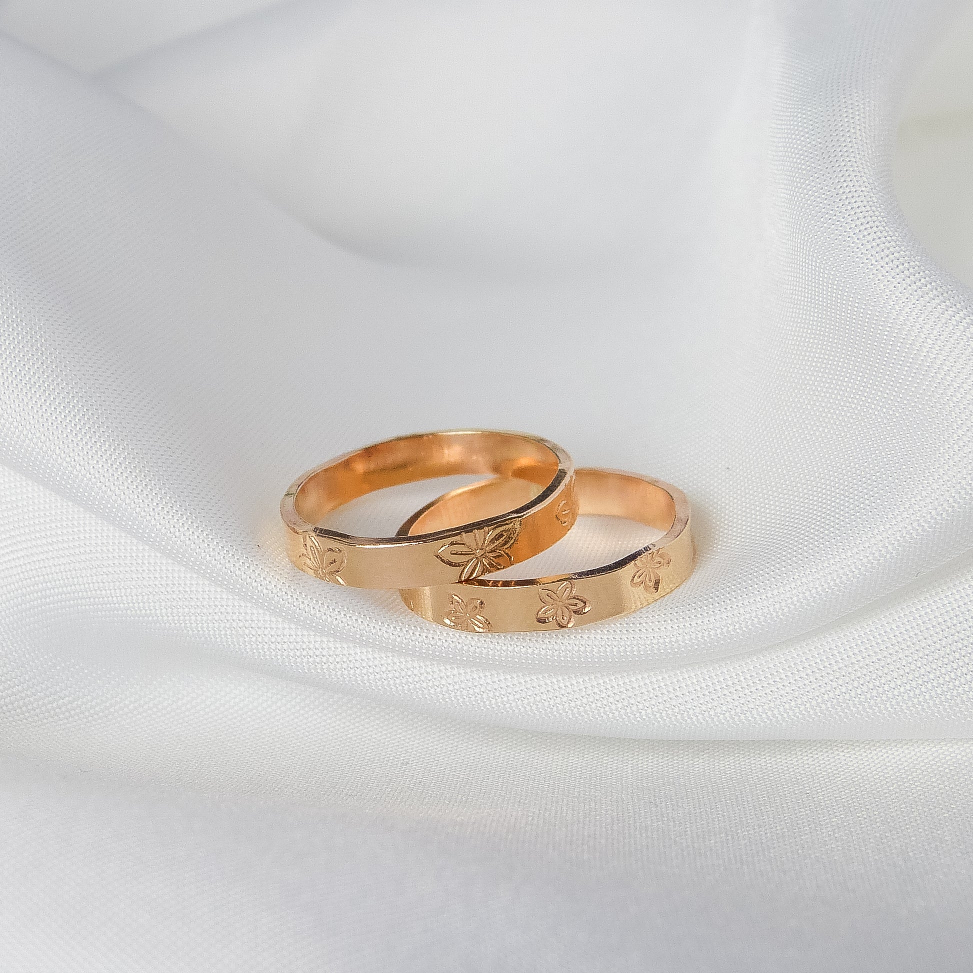 Wyjątkowa obrączka, która przyciąga wzrok. Pięknie zdobiona tłoczonymi kwiatami, które nadają jej niepowtarzalnego charakteru. Wzór zapadający w pamięć, dzięki któremu obrączka emanuje lekkością i naturalnym wdziękiem.