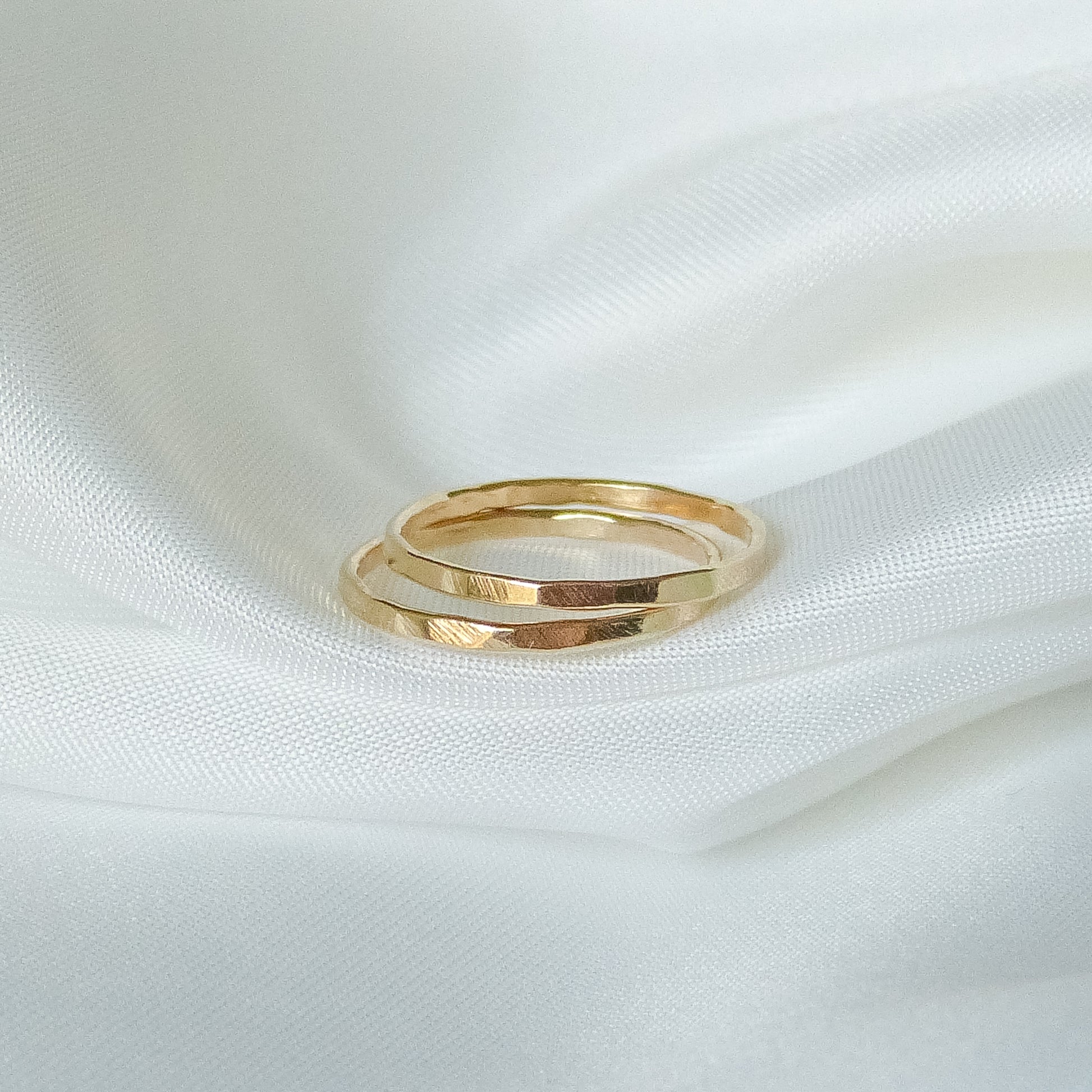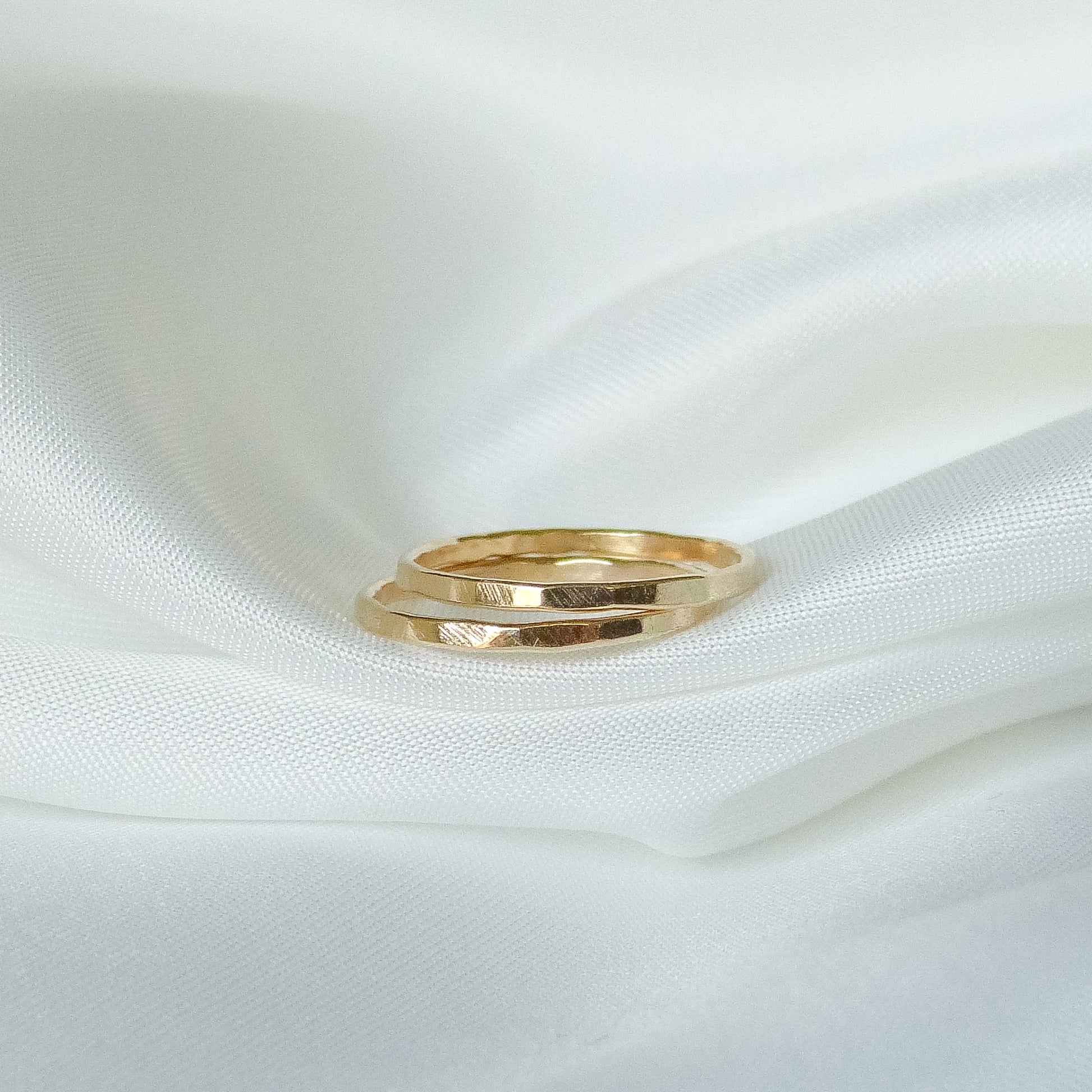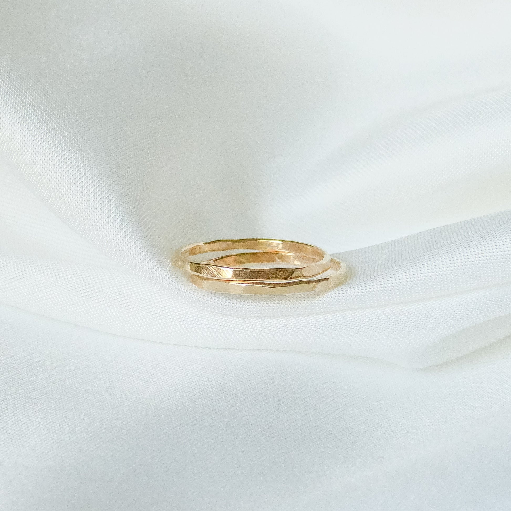 Pierścionek o delikatnie młotkowanej powierzchni, która nadaje mu wyjątkowego charakteru i sprawia, że pięknie odbija światło przy każdym ruchu dłoni. Subtelne „obicia” tworzą nieregularną fakturę, podkreślając ręczne wykonanie i unikalność każdego egzemplarza.