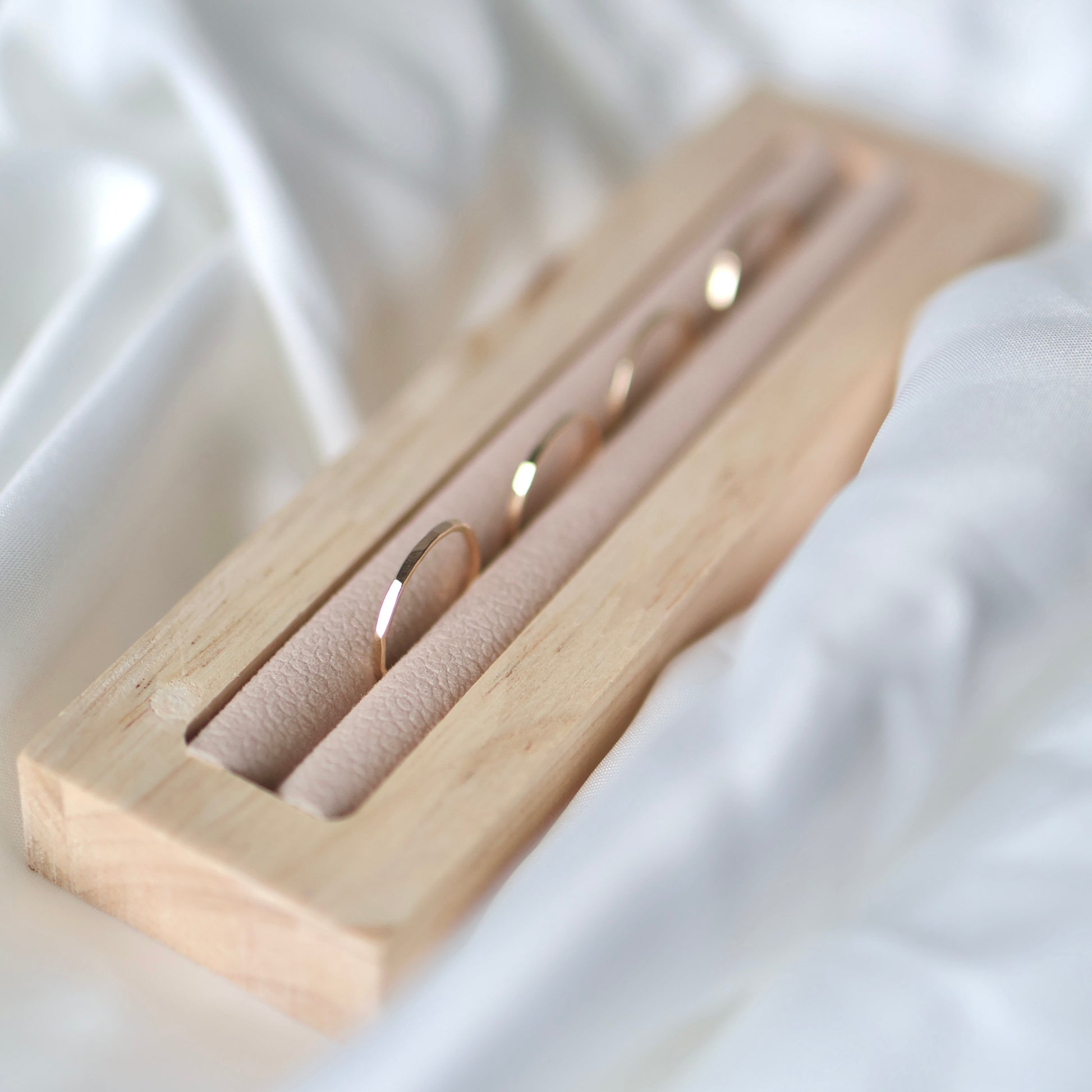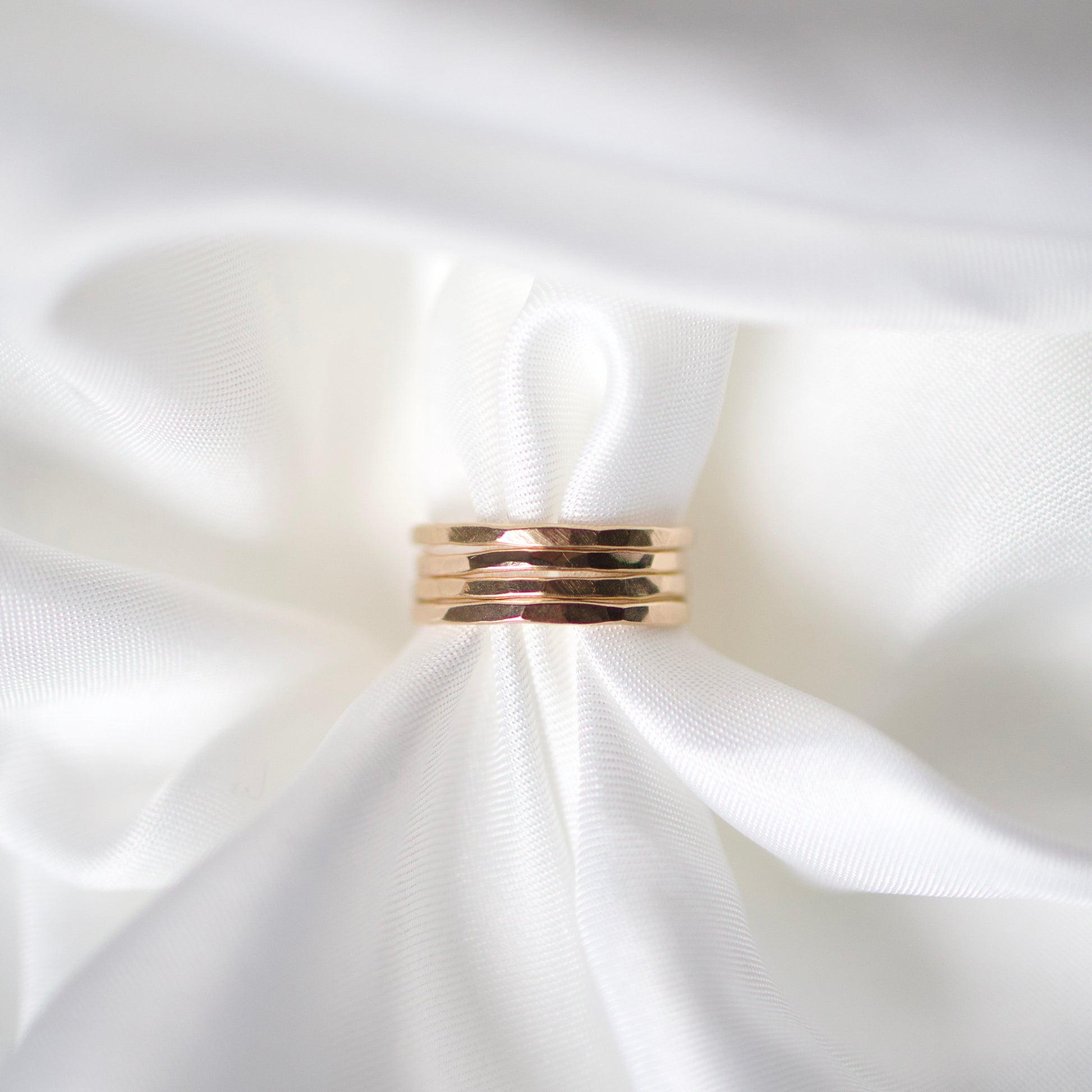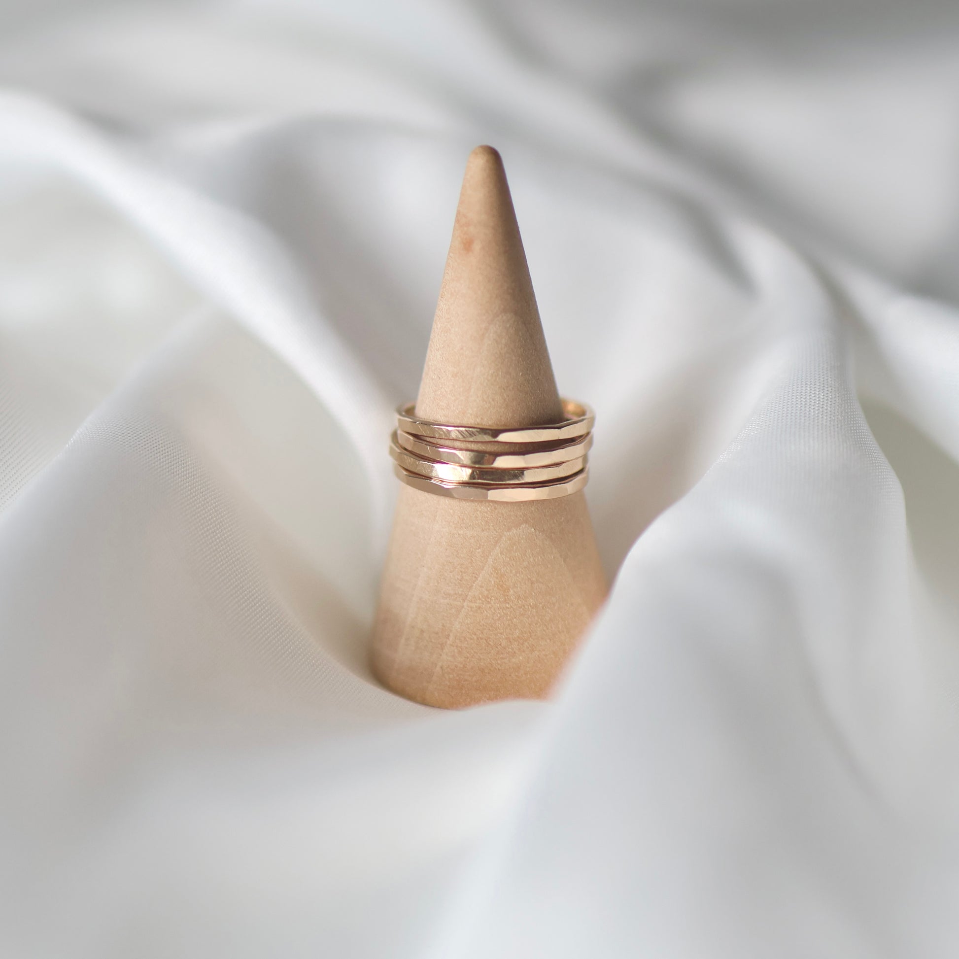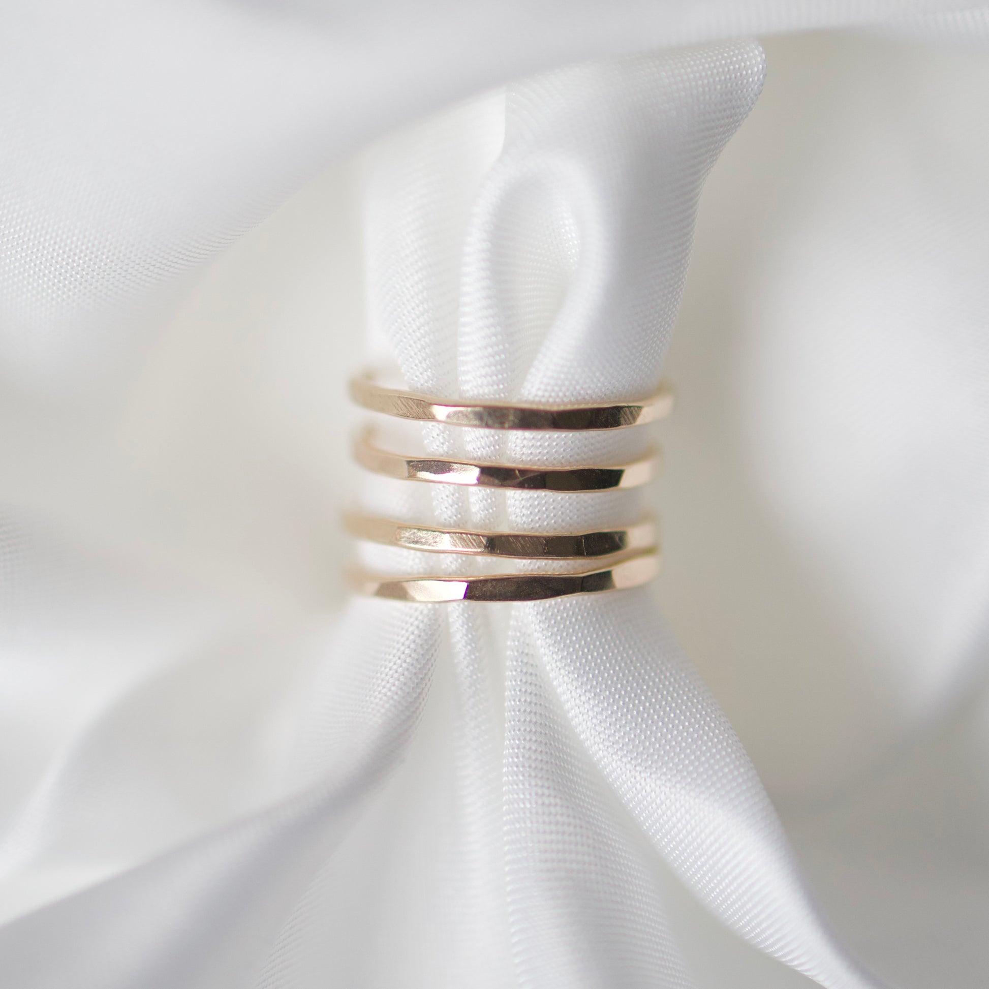 Pierścionek o delikatnie młotkowanej powierzchni, która nadaje mu wyjątkowego charakteru i sprawia, że pięknie odbija światło przy każdym ruchu dłoni. Subtelne „obicia” tworzą nieregularną fakturę, podkreślając ręczne wykonanie i unikalność każdego egzemplarza.