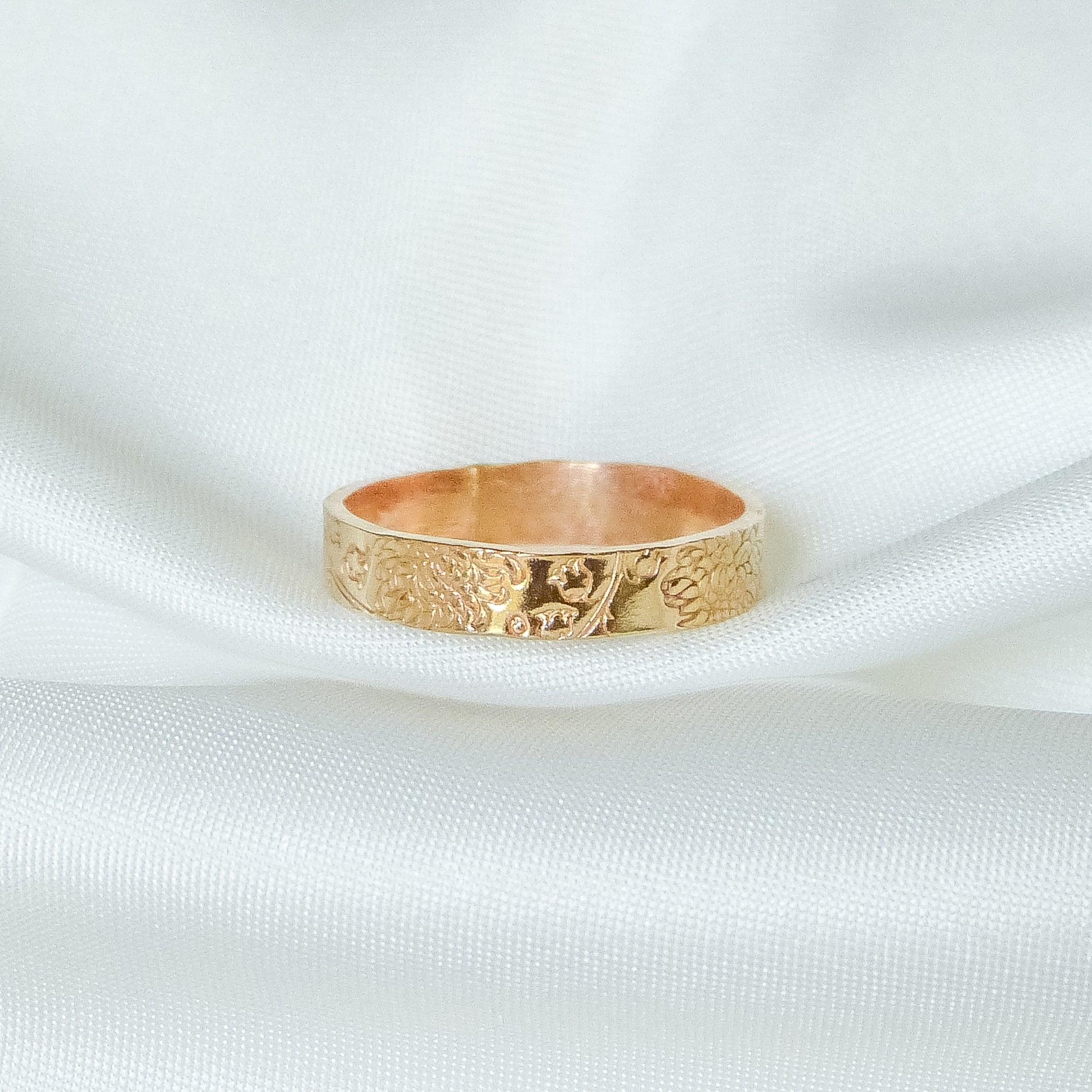 Delikatnie tłoczone kwiaty urodzinowe subtelnie zdobią całą powierzchnię eleganckiej obrączki, nadając jej wyjątkowego charakteru. To nie tylko piękna biżuteria, ale także symbol bliskich osób, o których ten pierścionek może Ci przypominać codziennie. Może również symbolizować miesiąc Twoich urodzin lub osoby obdarowanej, dla której pierścionek ten będzie wyjątkowym prezentem personalizowanym.