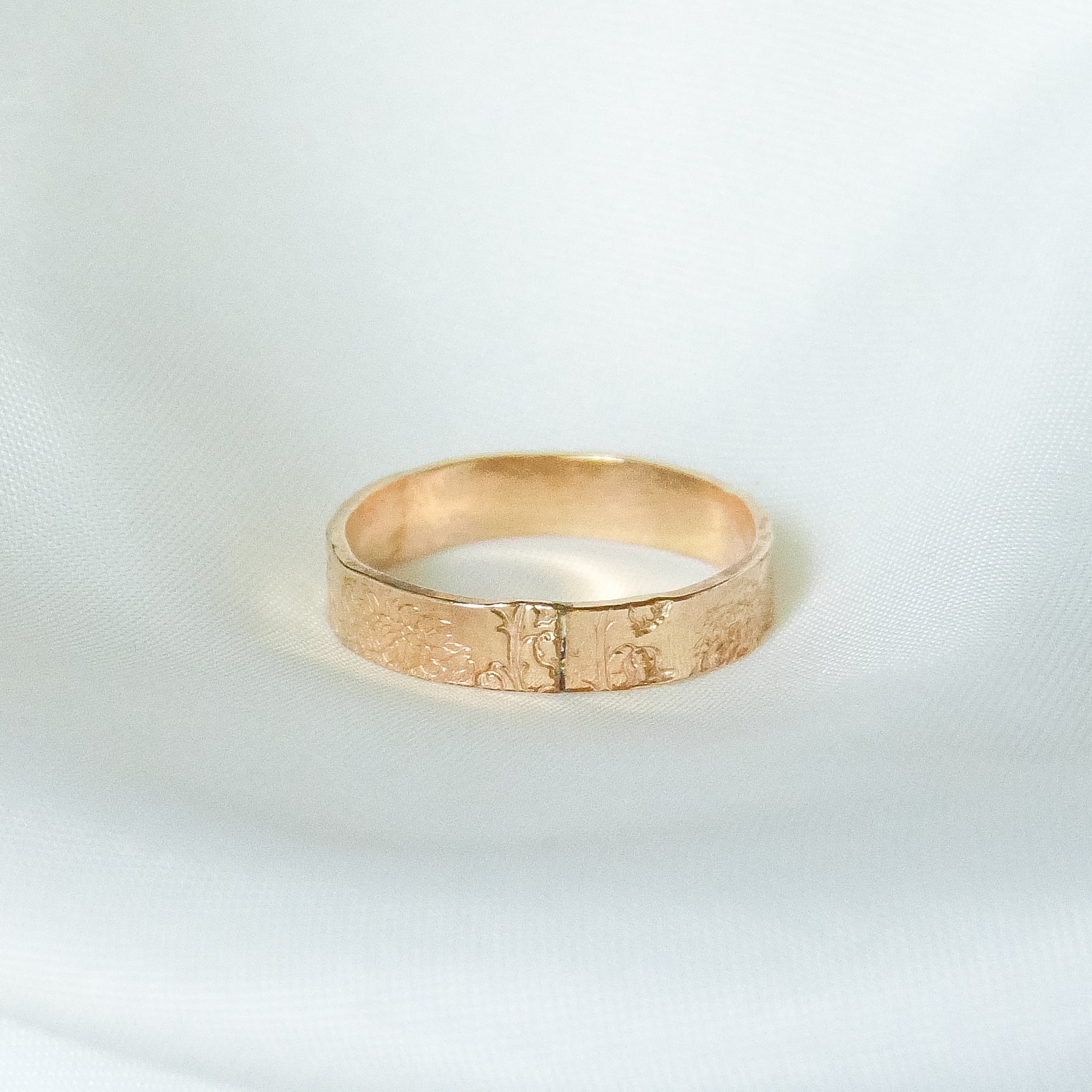 Pierścionek został wykonany metodą spawania, z której obecnie już nie korzystam. W miejscu łączenia metalu widoczna jest ciemna linia (widoczna na zdjęciach), która znajduje się po wewnętrznej stronie palca i jest mało zauważalna podczas noszenia. Dodatkowo mają delikatnie bardziej różowy odcień od standardowych pierścionków gold filled dostępnych na sklepie.