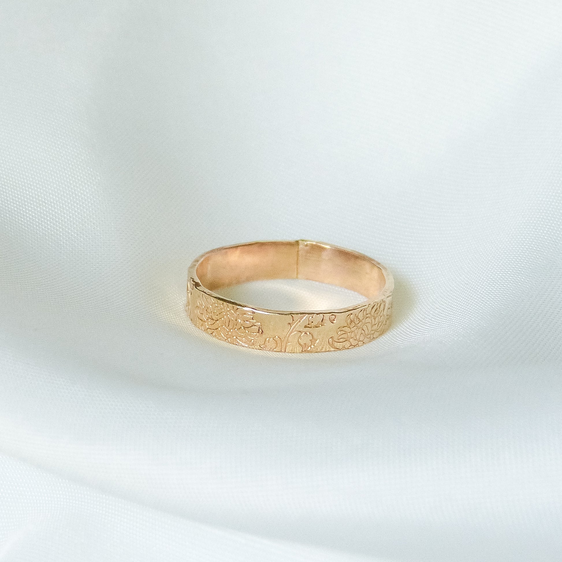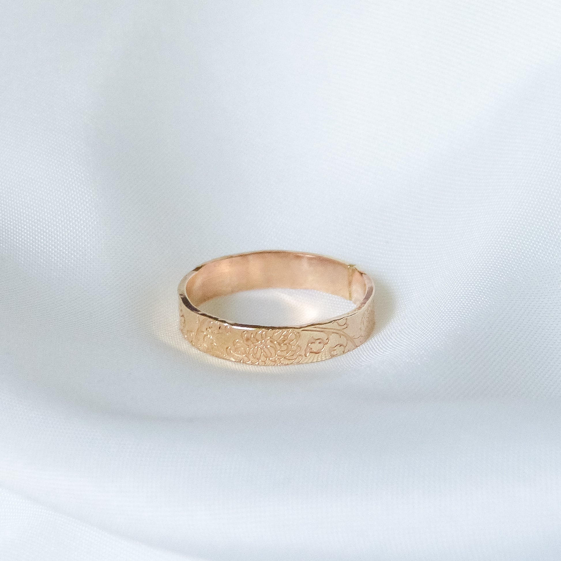Nie ma dwóch identycznych pierścionków – drobne różnice w tłoczeniach sprawiają, że każdy z nich jest niepowtarzalny. Ze względu na kształt i szerokość obrączki zalecam wybór rozmiaru o jeden większego niż standardowy, aby zapewnić idealne dopasowanie i komfort noszenia.